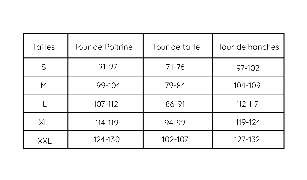 Super maintien, parfait même sans soutien-gorge. Taille conforme. » — Sophie